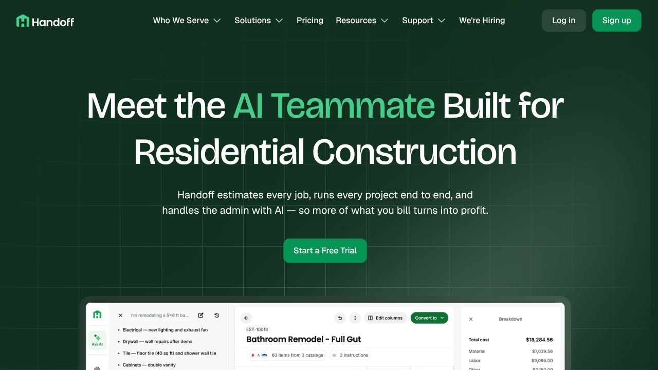 Most construction management tools feel like digital paperwork - trading physical forms for screen time. Handoff.AI flips this narrative by letting contractors literally talk their way through estimates. While Origami Agents excels at general sales automation, Handoff.AI speaks the specific language of construction, turning site walkthroughs into instant estimates.